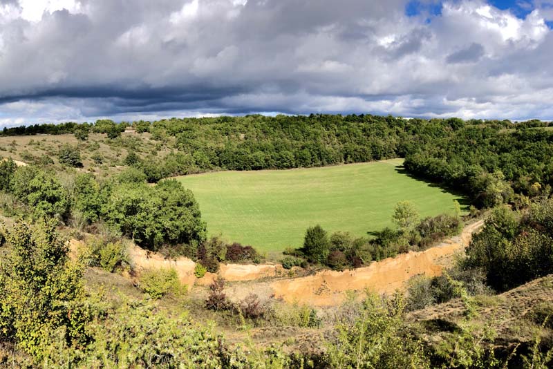 Von Rocamadour aus führt eine kleine Straße dem Alzou-Tal folgend an den Höhlenpool - dieser erscheint als großflächiges Gewässer von bis zu 25 m Durchmesser. Die Gemeinde Rocamadour hat in der Nähe eine Pumpstation für eine Wasserversorgung gebaut. Unter der Wasseroberfläche bedeckt reichlich Vegetation den Lehm-Sand-Boden bis etwa -6m. In der Ostzone fallen die Wände senkrecht bis zum Eingangsportal ab. Dieses findet sich auf 12-15 m Tiefe, wo Kieselsteine den Boden bedecken und die Höhle gleich auf -31m abfällt. Danach, nur etwa 40m vom Eingang entfernt, öffnet sich der Verlauf zu einer riesigen Galerie - viele Risse und Korrosionstöpfe bilden die Strukturen.