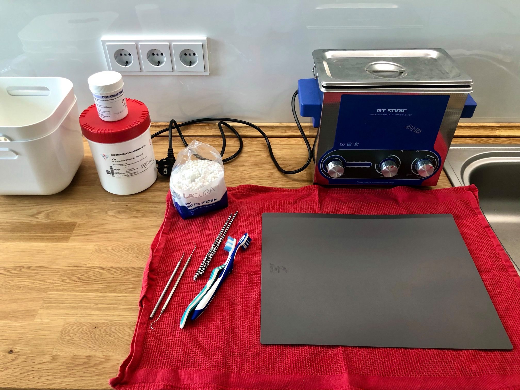 Nach der Theorie ging es los! Bsssssssssss....Das Ultraschallgerät summt, neue Einzelteile finden ihren Platz im Ventil.