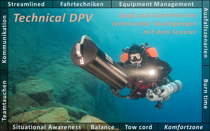 Zusätzlich erfährst Du, wie Du technische Tauchgänge / Dekompressionstauchgänge mit dem Scooter planen kannst und was beim Gaswechsel etc. zu beachten ist, wenn Du einen Scooter mitführst.