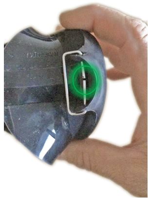 Bei anderen Maskenmodellen (Abbildung 5) muss ggf. die Kunststoffkonstruktion am Maskenband etwas verformt/auseinandergedrückt werden, um die Maskenbandkonstruktion vom Grundkörper entfernen zu können.