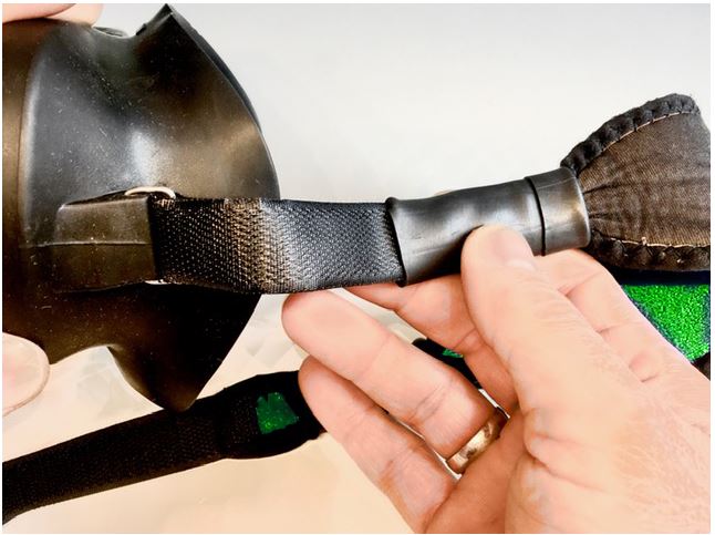 An der Maske Deiner Wahl muss der Maskengrundkörper eine Montage wie nachfolgend gezeigt oder äquivalent ermöglichen. Die Artenvielfalt der Anbringung an den vielen auf dem Markt verfügbaren Masken ist grenzenlos und einfallsreich. Nicht jede Maske ist für eine Anpassung wie hier präsentiert geeignet.